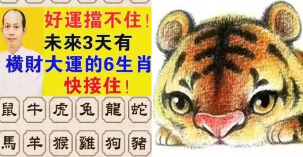 未來3天 六生肖 「 好運擋不住 」 「 有橫財大運 」 !