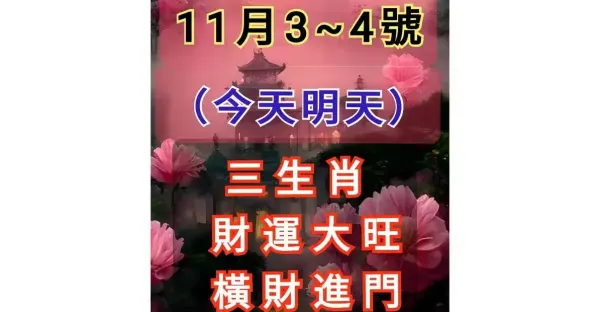 11月3 ~ 4號 (今天明天)三生肖 財運大旺 橫財進門