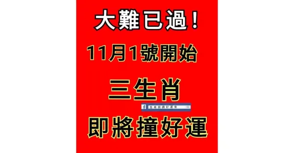 大難已過! 11月1號開始 三生肖 即將撞好運