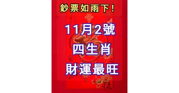 鈔票如雨下!11月2號 四生肖 財運最旺