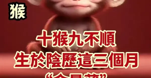 生肖猴:十猴九不順,生於陰曆這三個月「命最薄」,是生來還債的