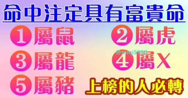 未來富的5大生肖:30歲事業高升,40歲不缺錢花,50歲兒孫滿堂,60歲安享晚年