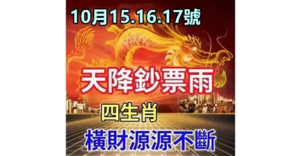 10月15.16.17號天降鈔票雨,橫財源源不斷的生肖