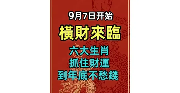 9月7日開始橫財來臨,6大生肖抓住財運,到年底不愁錢花