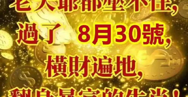 老天爺都壓不住,過了8月30號橫財遍地,翻身暴富的生肖!!