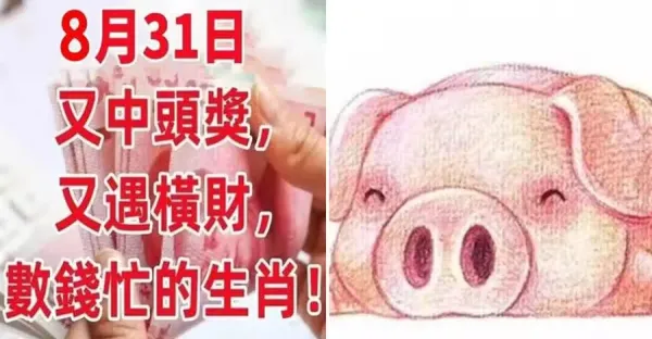 8月31日(8月最後一天)又中頭獎,又遇橫財,數錢忙的生肖!