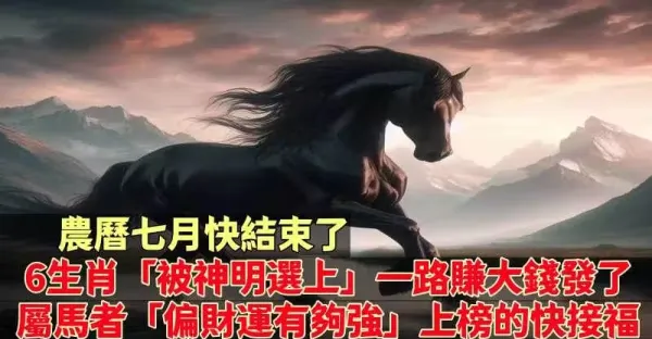農曆七月快結束了!6生肖「被神明選上」一路賺大錢發了 屬馬者「偏財運有夠強」上榜的快接福