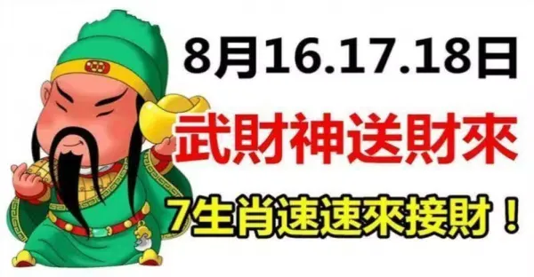 8月16.17.18日武財神送財來,七生肖來接財.
