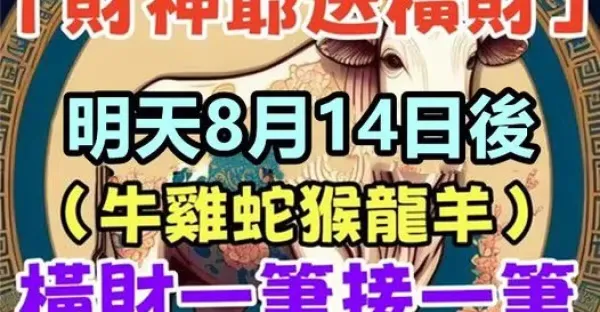 財神爺青睞 8月14號 三生肖 八方來財 橫財大旺