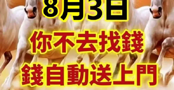 8月2.3.4號財運一馬當先,恭喜6大生肖鈔票滾滾來!