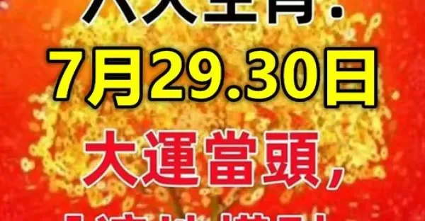 明天7月30號,橫財最旺的六生肖