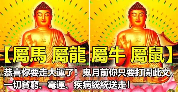 屬馬 屬龍 屬牛 屬鼠 恭喜你要走大運了!鬼月前你只要打開此文,一切貧窮、霉運、疾病統統送走!