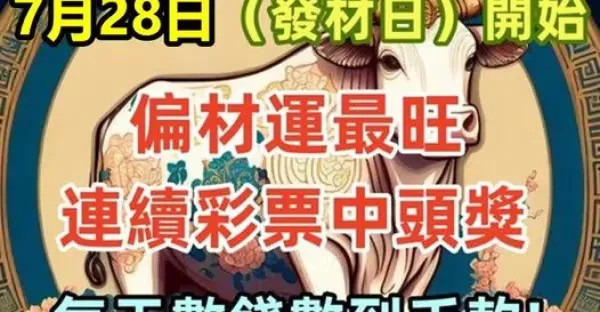 未來三天【7月28.29.30日】最有「中獎運」的生肖有你嘛