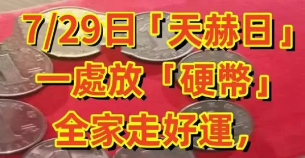 就在明天!7/29日「天赫日」一處放「硬幣」全家走好運,財運旺旺來!