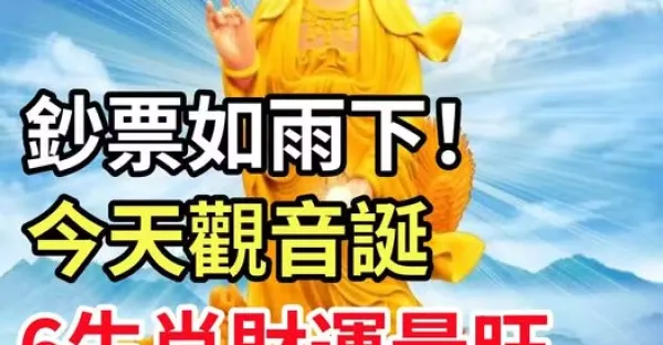 偷偷告訴你:六大生肖,六月十九【觀音誕】財運旺到爆有你嘛!