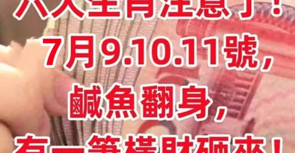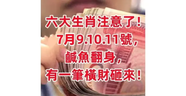 7月9.10.11號鹹魚大翻身,有一筆橫財砸來的生肖!