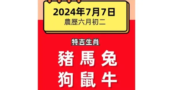 小運播報:2024年7月7日,星期日,農歷六月初二