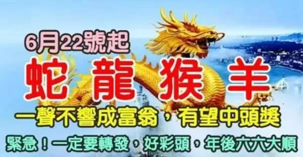 八大生肖:6月22日開始最有頭獎運