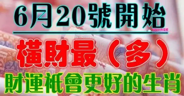 恭喜了7大生肖,在未來三天( 6月20~23日)即將有一筆橫財!準備好收錢吧!