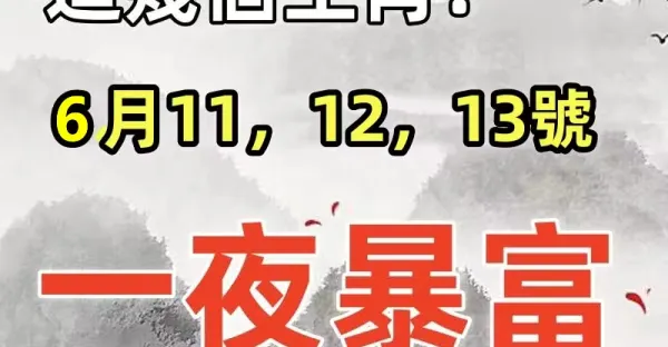 這幾個生肖:6月11,12,13號,三天內一夜暴富