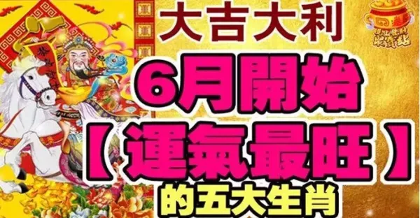 大吉大利,6月開始(運氣最旺)的五大生肖