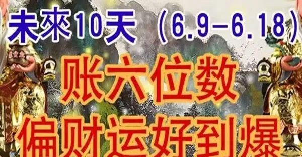 未來10天(6月9號 到 6月18號)賬六位數,偏財運好的生肖
