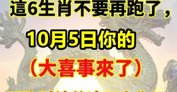 這6大生肖不要再跑了,10月5日你的(大喜事)來了,再跑財神爺追不上你了!!