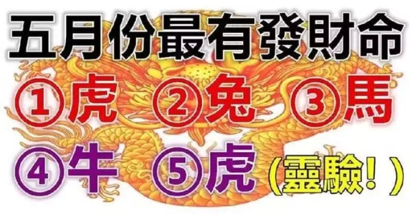5月15日馬上發橫財,六大生肖開心數鈔票