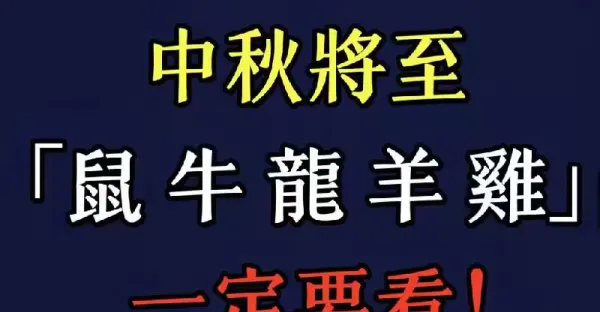 中秋將至「屬鼠 屬牛 屬龍 屬羊 屬雞」一定要看!