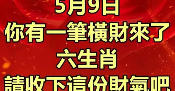 5月9日有一筆橫財來了,六生肖請收下這份財氣吧