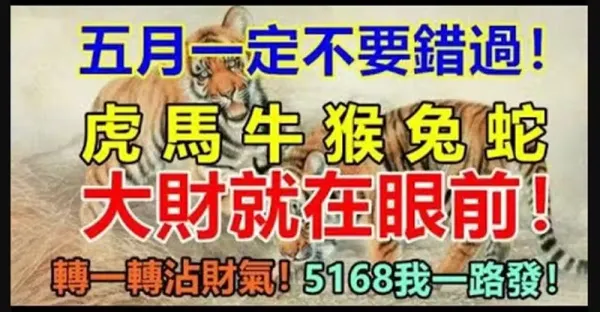 生肖虎馬牛猴兔蛇,五月一定不要錯過,大財就在眼前