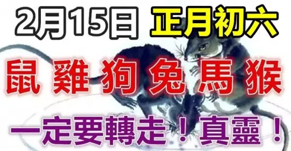 2月15日生肖(鼠、雞、狗、兔、馬、猴)一定要轉走