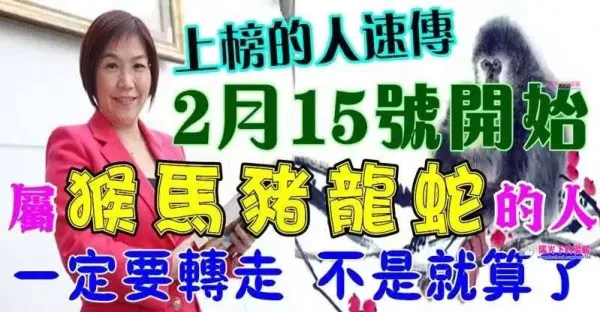 2月15號開始生肖(猴馬豬龍蛇)的人一定要轉走,不是就算了