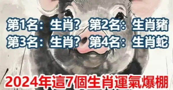 實在太旺了!2024年這7個生肖「千萬不要惹」 他們「前有貴人的相助」後有財神招財 第1名:生肖? 第2名:生肖豬 第3名:生肖? 第4名:生肖蛇