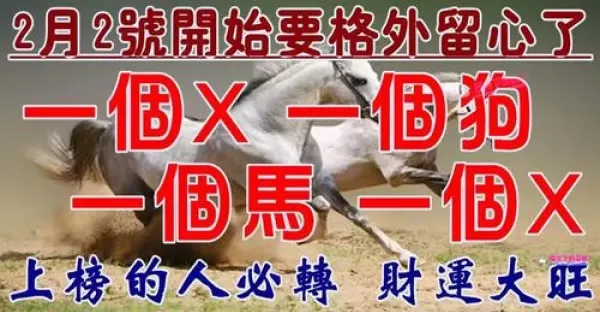 2月2號開始要格外留心了,一個X,一個狗,一個馬,一個X財運大旺快來接