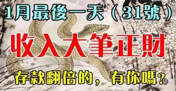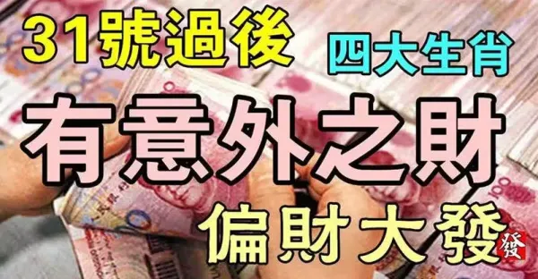 今天31號(1月最後一天)橫財最旺的六生肖