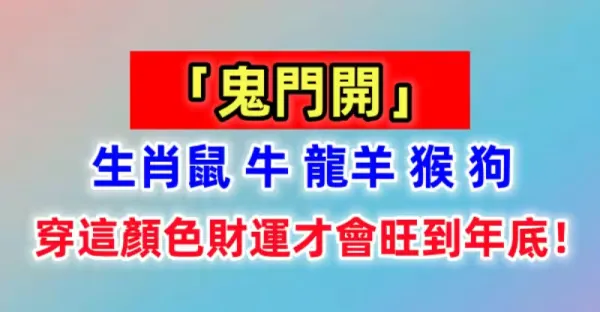 「鬼門開」生肖鼠、牛、龍、羊、猴、狗穿這顏色,財運才會旺到年底!