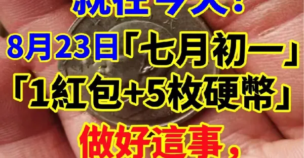 就在今天! 8/23日「七月初一」準備「1個紅包+5枚硬幣」做好這事,招橫財走好運