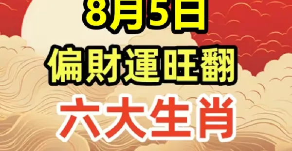 8月5日,中大獎 發橫財 享富貴的六大生肖