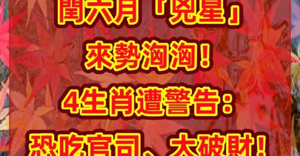閏六月「凶星」來勢洶洶!4生肖遭警告:恐吃官司、大破財!