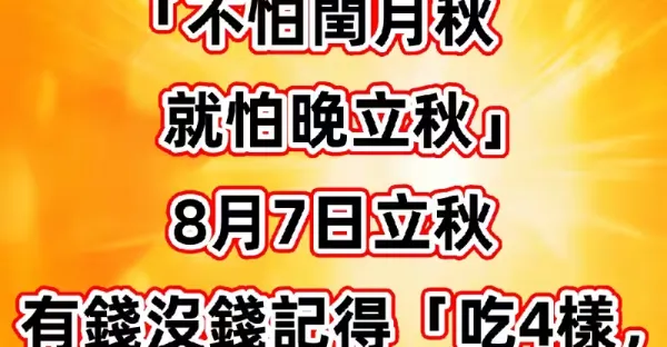 老話說「不怕閏月秋,就怕晚立秋」,8月7日立秋,有錢沒錢記得「吃4樣,做1事」安康入秋!