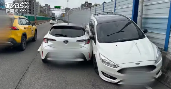 北市新生高架Focus鬼切害Toyota剎車不及撞上,整車失控轉180度卡護欄