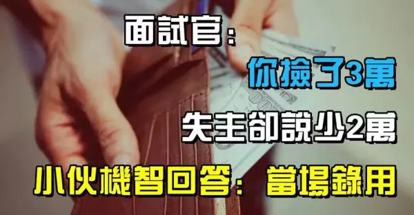 面試官:你撿了3萬,失主卻說少2萬,小夥機智回答:當場被錄用