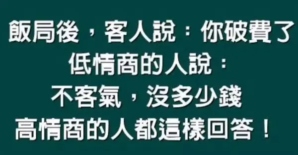 飯局後,客人說「你破費了」,低情商的人說:「不客氣,沒多少錢」,高情商的人都這樣回答!!