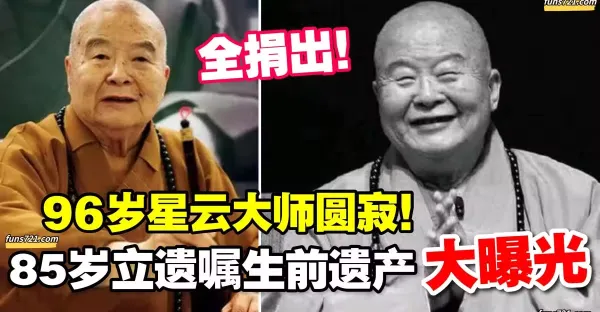 96歲星雲大師圓寂!晚年被病痛折磨,85歲立遺囑將遺產都捐出!