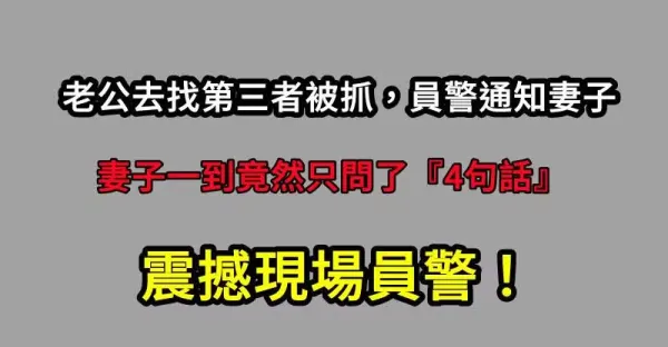 老公去找第三者被抓,員警通知妻子,妻子一到竟然只問了『4句話』震撼現場員警!