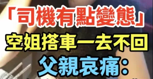 「司機有點變態」空姐搭車一去不回 父親哀痛:身上還有液體!