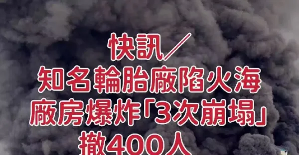 快訊/知名輪胎廠陷火海!廠房爆炸「3次崩塌」撤400人 毒氣狂飄燒數日