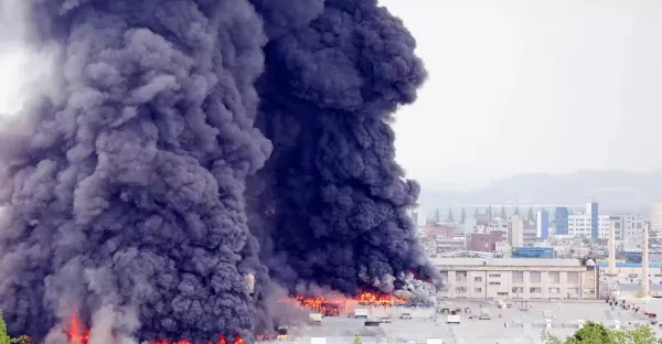 快訊/知名輪胎廠陷火海!廠房爆炸「3次崩塌」撤400人 毒氣狂飄燒數日