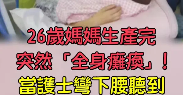 26歲媽媽生產完突然「全身癱瘓」!當護士彎下腰聽到「她口中不斷念著...」顫抖激動!